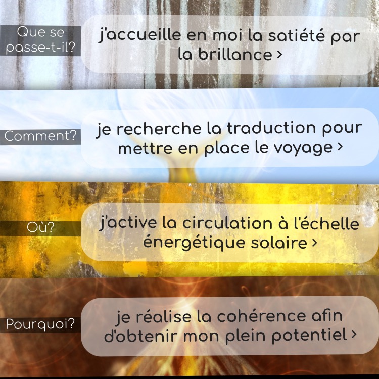 What it brings: Integration of adamantine particles through heart/thymus unity; Elevation of non-embodied beings to their intended destination, alleviation of egregores and burdens; Enhancement of all internal and external communication circuits; Harmonization of one's individual identity to one's multiple existence.